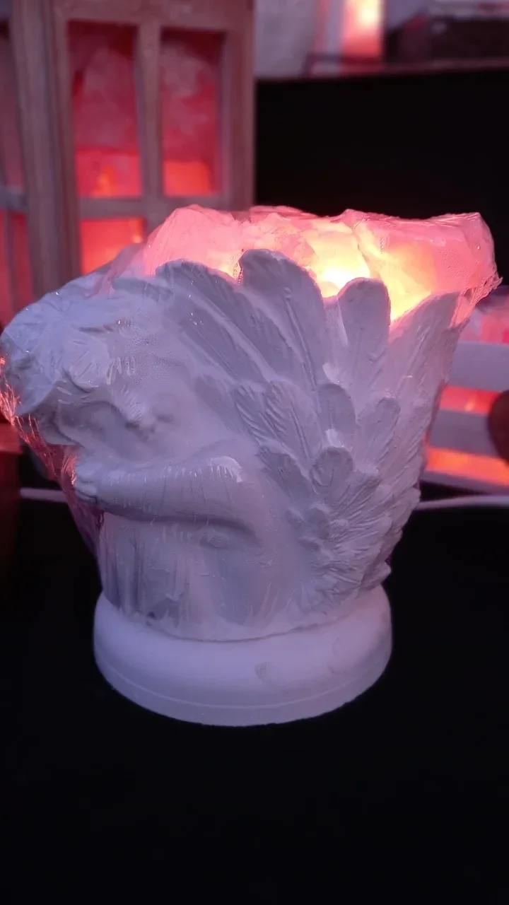 Angioletto realizzato in polvere di ceramica bianca o colorata , all'interno pezzi di sale rosa dell'Himalaya ed una lampadina da 15 watt per creare una luce soffusa e rilassante.